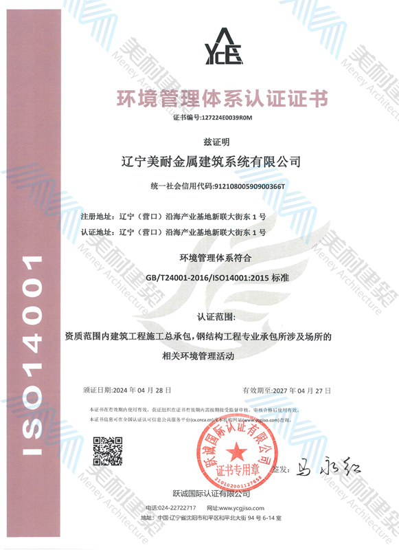遼寧美耐金屬建筑系統(tǒng)有限公司位于遼寧(營(yíng)口)沿海產(chǎn)業(yè)基地,專(zhuān)注于預(yù)制金屬建筑系統(tǒng)領(lǐng)域,是一家集工業(yè)建筑設(shè)計(jì)、制作、施工及相關(guān)的技術(shù)咨詢與服務(wù)為一體的綜合性服務(wù)企業(yè)。作為國(guó)家鋼結(jié)構(gòu)協(xié)會(huì)會(huì)員、中國(guó)建筑金屬結(jié)構(gòu)協(xié)會(huì)會(huì)員單位與國(guó)家高新技術(shù)企業(yè),美耐建筑集建筑工程施工總承包、鋼結(jié)構(gòu)工程專(zhuān)業(yè)承包等多種資質(zhì)于一身,并擁有22項(xiàng)鋼結(jié)構(gòu)建筑領(lǐng)域?qū)@?項(xiàng)軟件著作權(quán)。